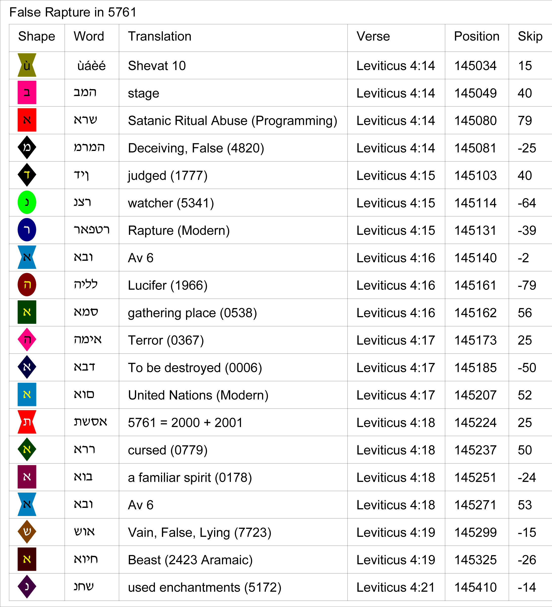 In one of our tighter Bible Codes, we see a discussion of a potential "rapture of the church" as predicted byHal Lindsey, Tim LaHaye, and Jerry B. Jenkins, and a host of other preachers. Yet, as we did further research into this code, we began to realize that this code was not talking about a godly rapture of the saints... it was talking about a fake rapture designed to deceive the Body of Messiah (Christ). When you read the Olivet Discourse (Matthew 24-25, Mark 13, Luke 21), the primary warning Jesus gave to His disciples was to "take heed that no man deceive you." When it comes to His Second Coming, He knew there would be a lot of deception. This code warns of this deception.