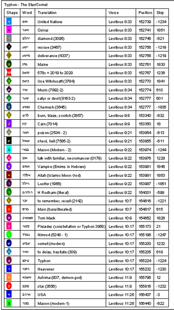 When we look at the Bible Code, we see that Typhon is a combination star and comet. It has the power of a star but looks like a big comet. We aren't the first to suggest such an object in space, but this is the first time we have seen it in a Bible Code. However, as we study this code, we discover that our governmental officials are indeed seeking spiritual help in trying to deal with this star/comet. Unfortunately, they are not seeking YHWH, they are seeking the help of liberal Christian ministers, necromancers, familiar spirits, and other spiritual beings. But it isn't just the governments of the world dealing with Typhon.